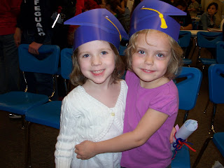 She did it! Bekah graduated Little Eagles Preschool today and it was pretty dang adorable. The kids were really excited and they each got a special award for the year-Bekah got the "most bright and understanding student" award. The class sang (screamed) the ABC song and got their diplomas and we all stayed after for pictures, goodbyes and cake. She had a fun year, and despite having to get up early every day and for the few little attitude things she picked up-I'm glad she did it. Congrats little graduate!